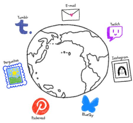 Instagram Pinterest Tumblr Perguntas E-mail Twitch BlueSky Surpresa